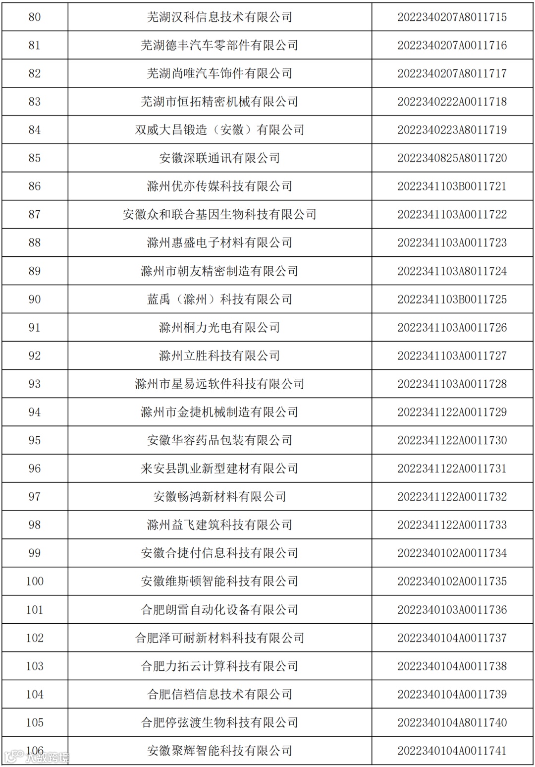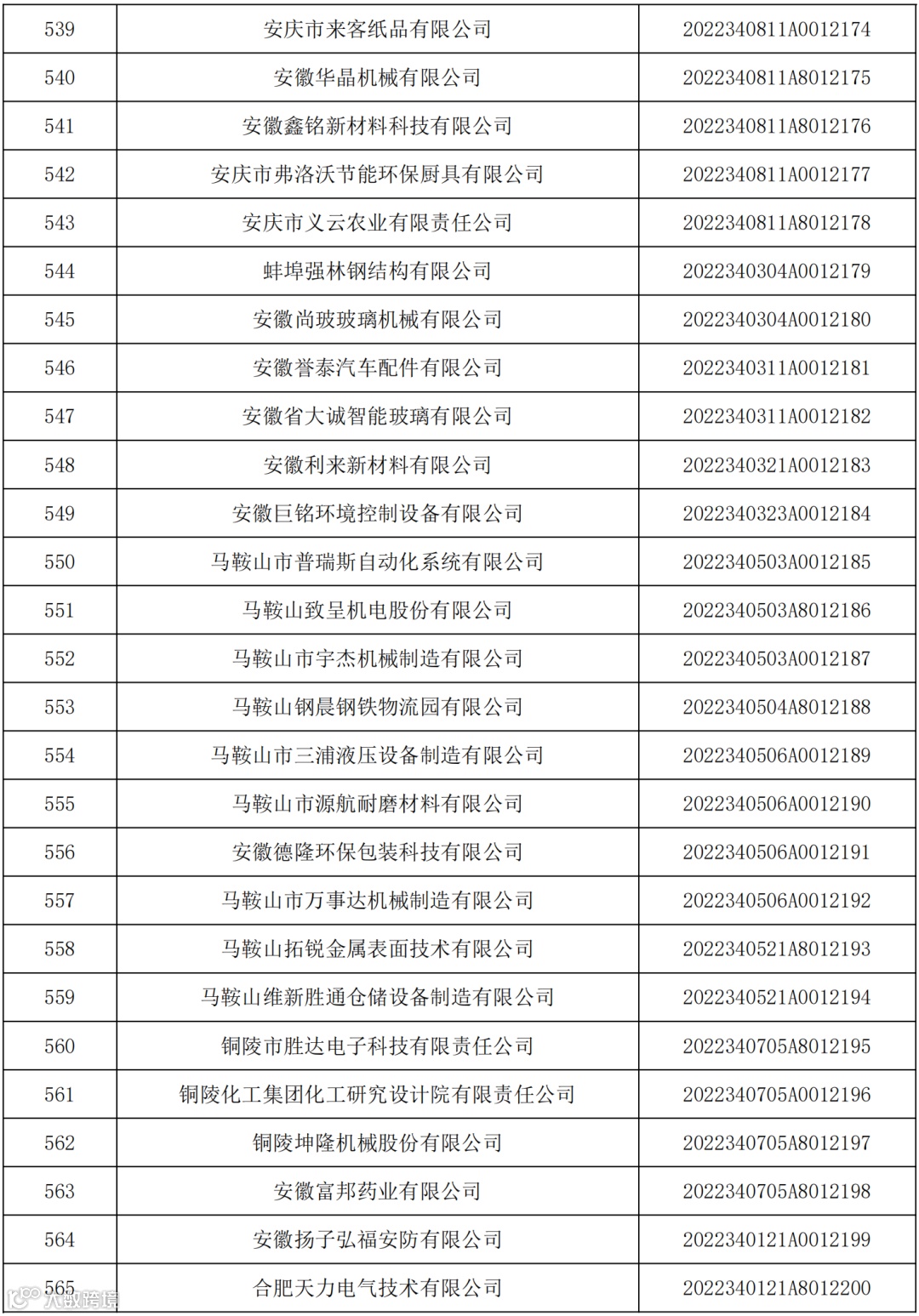 根据《科技型中小企业评价办法》(国科发政〔2017〕115号)和《科技型中小企业评价服务工作指引》(国科火字〔2022〕67号)要求,我省2022年第六批1268家拟入库科技型中小企业已在“全国科技型中小企业信息服务平台”公示10个工作日,现将通过公示的2022年第六批1258家入库科技型中小企业名单予以公告。