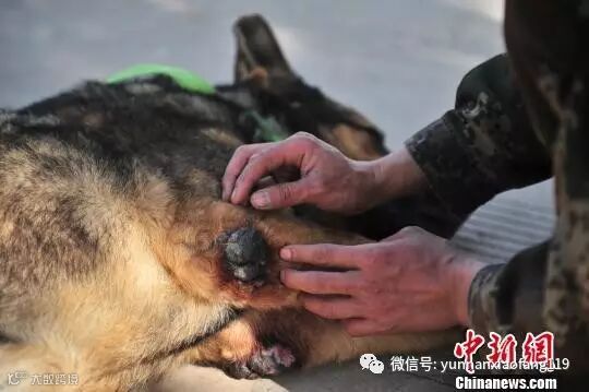 “最危险的一次是在汶川地震中。”王宏渊回忆,当时他和金雕正在余震不断的现场搜救,因为专注搜寻,金雕来不及躲避滑落的房屋预制板,被砸中鼻梁。“当时出了好多血,我们简单给它包扎后又再次投入搜救。”这次意外造成的伤痕,至今仍留在金雕的脸上。