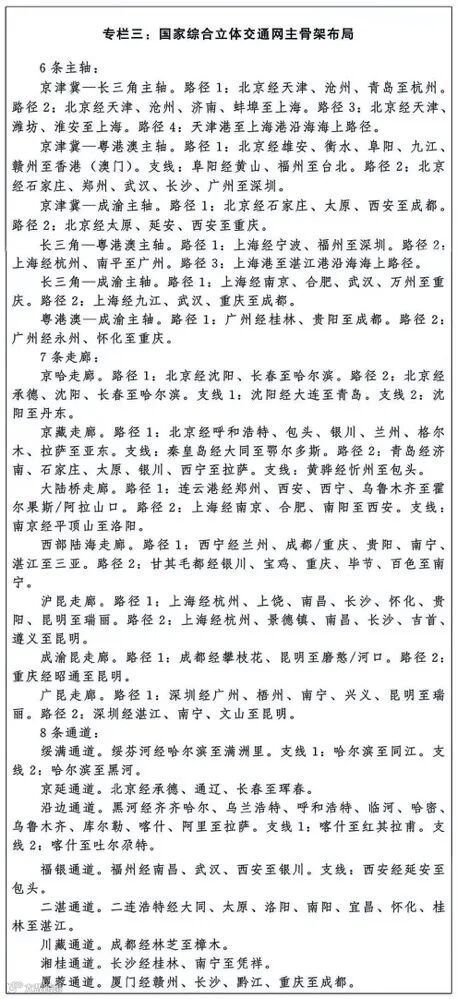 新华社北京2月24日电 近日,中共中央、国务院印发了《国家综合立体交通网规划纲要》,并发出通知,要求各地区各部门结合实际认真贯彻落实。《国家综合立体交通网规划纲要》全文如下。
