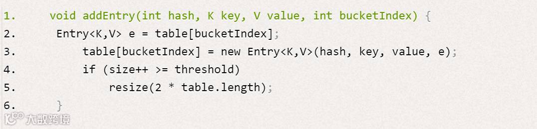 在hashmap 做put 操作的时候会调用到以上的方法。假如A线程和B线程同时对同一个数组位置调用addEntry,两个线程会同时得到现在的头结点,然后A写入新的头结点之后,B也写入新的头结点,那B的写入操作就会覆盖A的写入操作造成A的写入操作丢失。同理,当多线程对同一数组位置进行remove操作时也会产生覆盖。