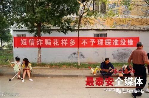 在泰山学院南校区,校园内随处可见的谨防电信诈骗的横幅。记者 陈阳 摄