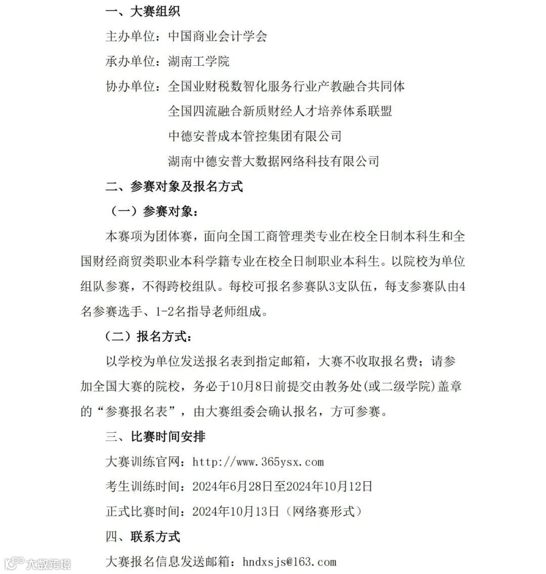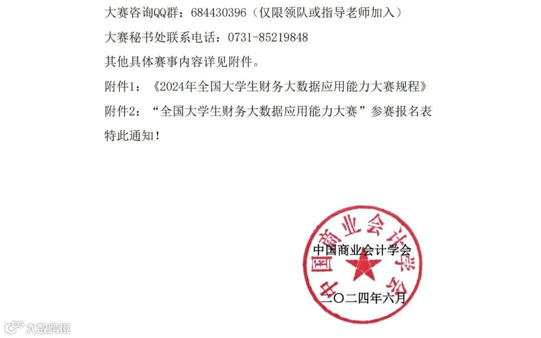 2024年全国大学生财务大数据应用能力大赛通知