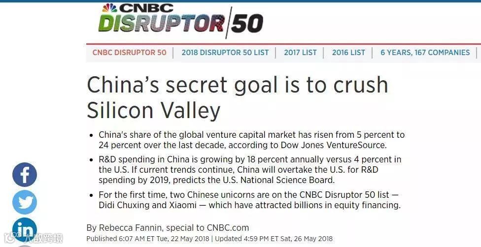 CNBC总结是,中国的秘密目标就是碾压硅谷。