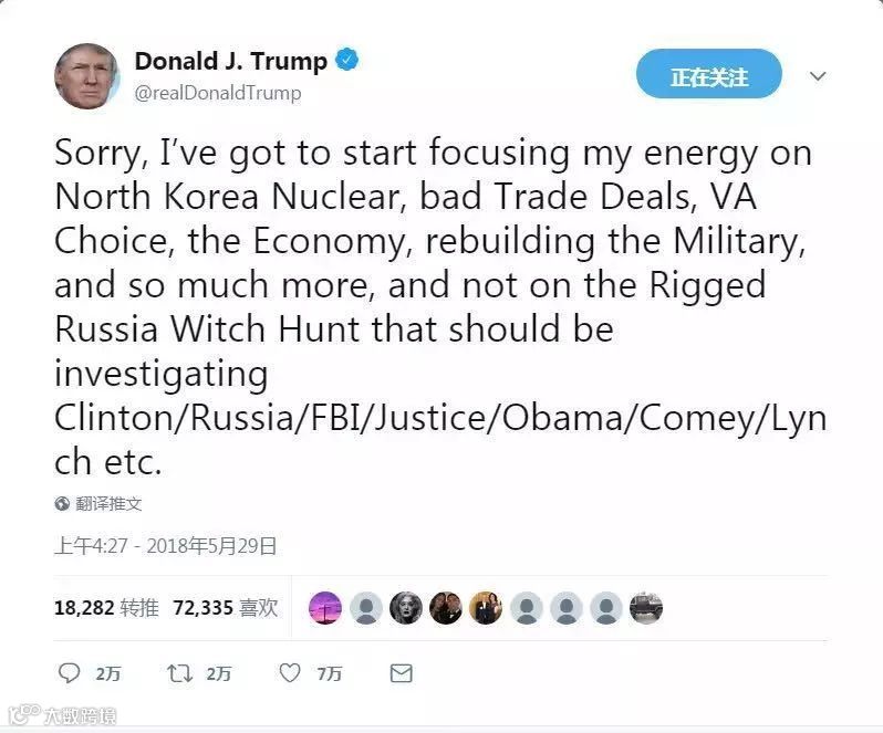 仅仅5天,特朗普就回心转意了!还在社交媒体上,要把精力集中在朝核问题上。