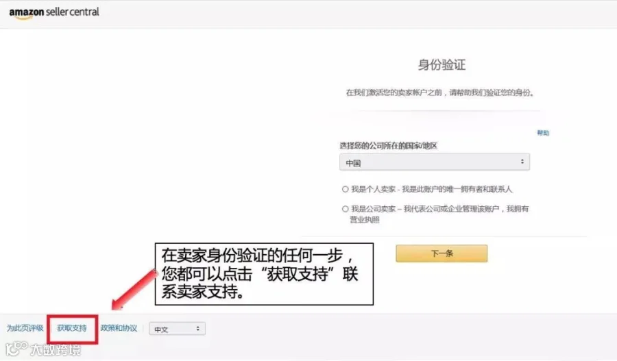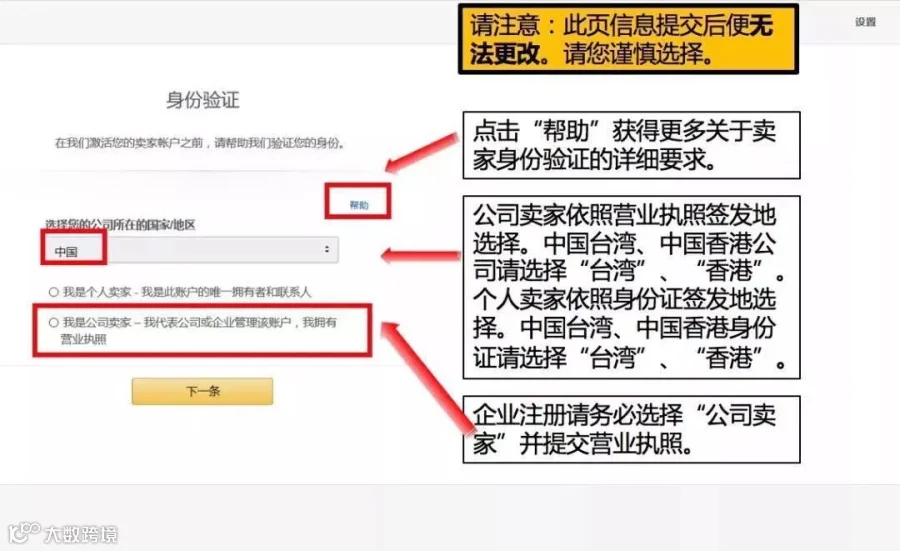 1.选择公司所在国家及卖家类型