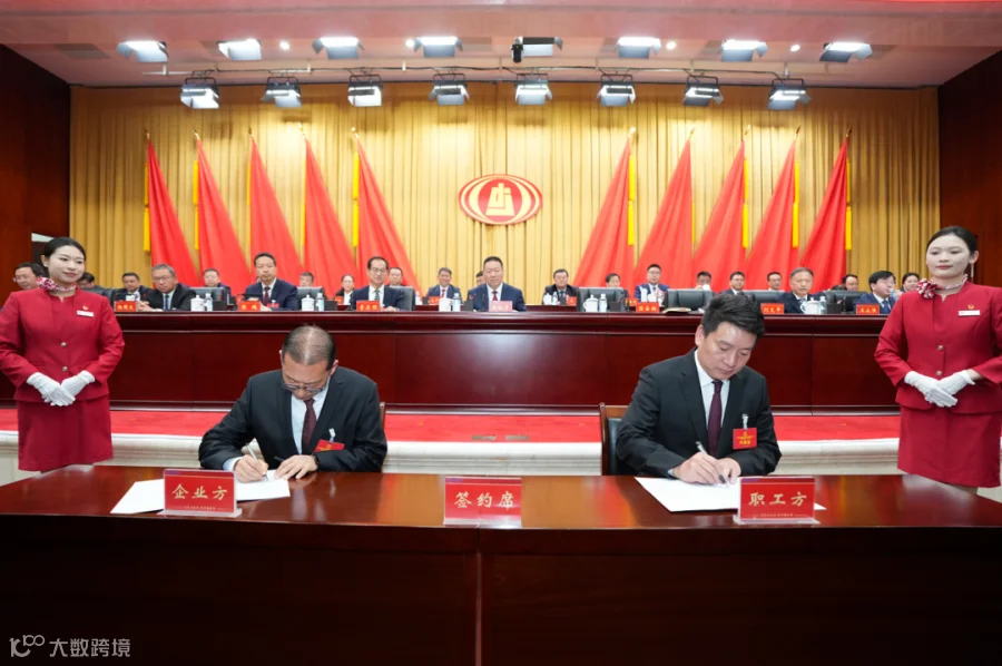 会议期间,陈宙翔与刘文平分别代表企业方和职工方签订《2026年集体合同》。