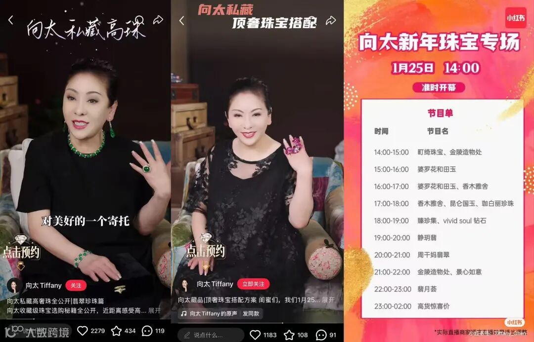 自1月5日起,向太陆续发布预热视频,包括助运珠宝挑选指南、私藏顶奢珠宝搭配展示,并同步公布直播节目单与合作品牌,有效激发用户种草意愿。
