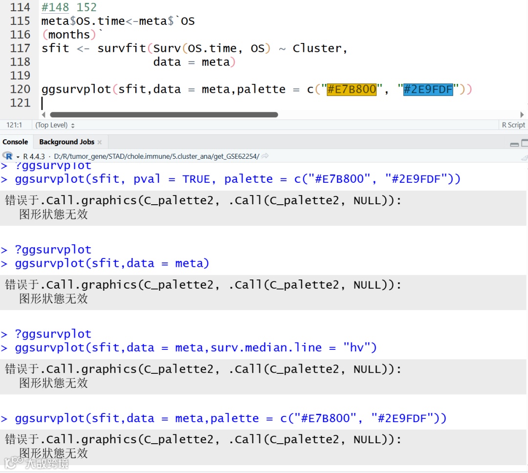 【R报错】这个ggsurvplot函数报错,说是调色板bug问题,求指导