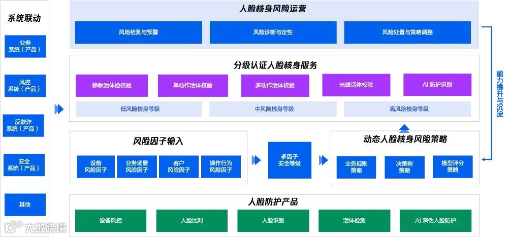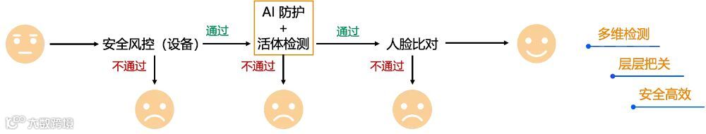 同步调整人脸核身策略:针对确定的风险类型(如新型 AI 换脸攻击),更新活体检测算法(如增加光线活体检测环节、增加 AI 人脸防护)、调整人脸核身的安全等级,以及调整相对应的人脸核身安全策略,以确保策略快速适配新型风险。
