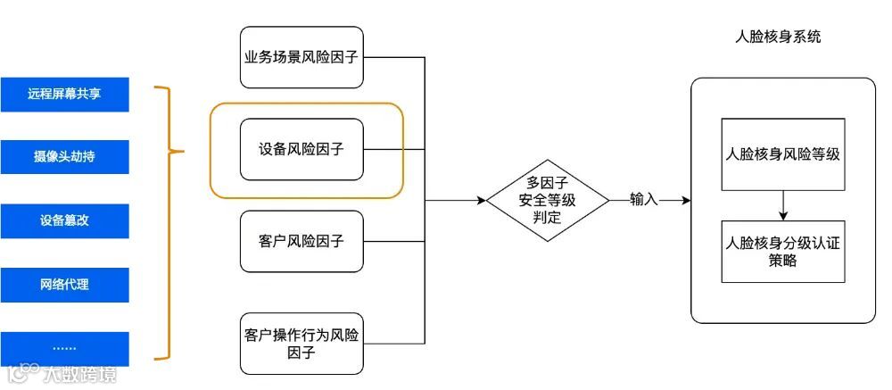 安全部门:负责监测人脸核身过程中的技术安全风险,如设备注入攻击、摄像头劫持、高危 IP 访问等,搭建安全防护技术体系,及时阻断恶意攻击行为,并为风险因子的识别提供技术支持。 -