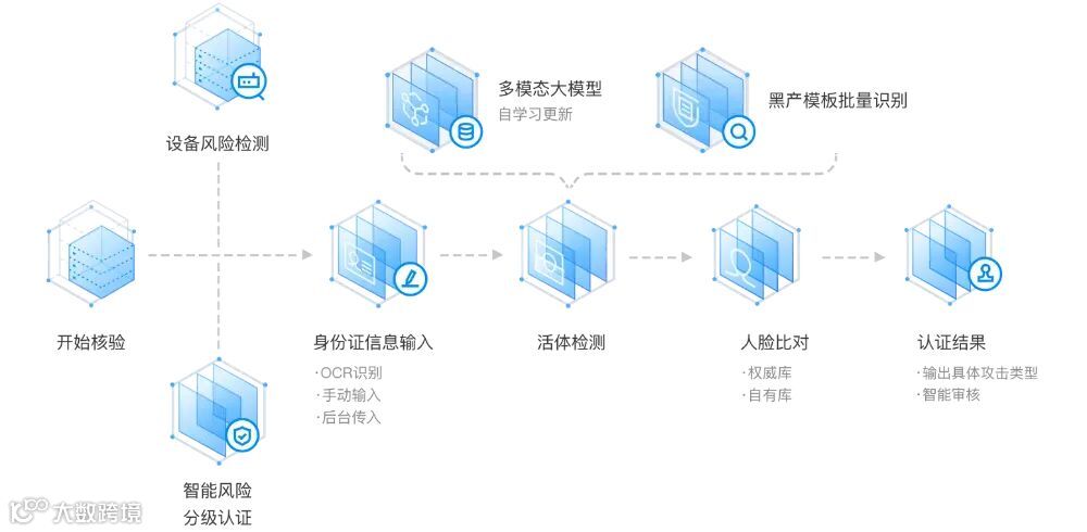 人脸比对:应用人脸相似度比对算法,通过与权威身份源(如公安库)的一致性,保障客户为本人,杜绝身份冒用。