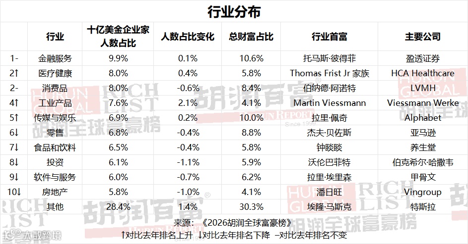 《2026胡润全球富豪榜》行业分布