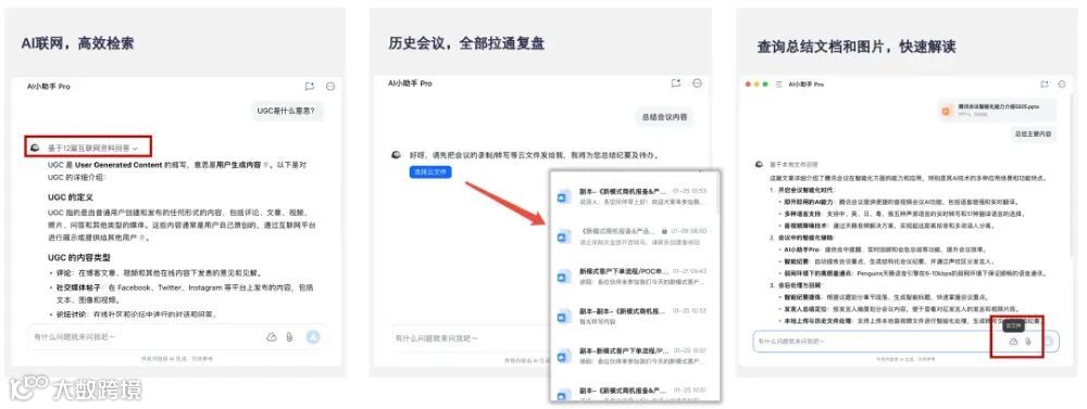 目前,腾讯会议已接入腾讯混元大模型、DeepSeek等AI大模型,AI助手Pro能够对会议中以及会议外的内容进行问答、会议纪要等智能化交互。
