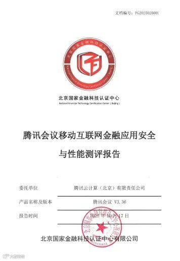 图:北京国家金融科技认证中心·腾讯会议检测评估报告
