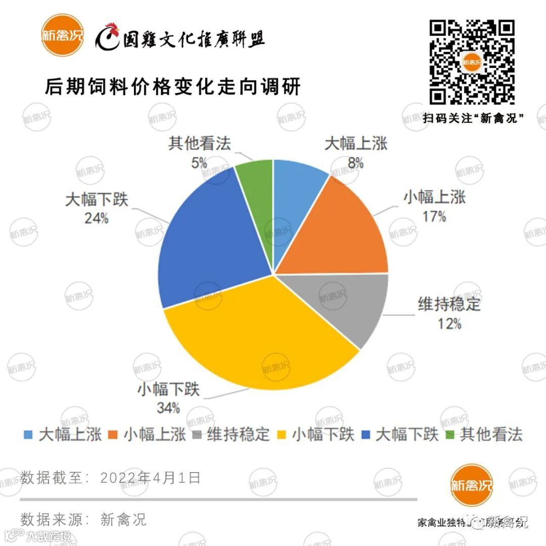 一方面,从存栏结构分析,当前后备鸡存栏稍显紧张,产蛋鸡存栏量增加缓慢,后续鸡蛋供应将持续紧张。另一方面,原料价格上涨导致饲料成本增加,对蛋价亦形成强有力的支撑。截至3月下旬单斤鸡蛋的饲料成本涨至3.9元左右,环比涨幅5.12%,同比涨幅11.43%。此外,受清明和五一带动,电商平台和商超或有一波促销活动,鸡蛋需求量增加。