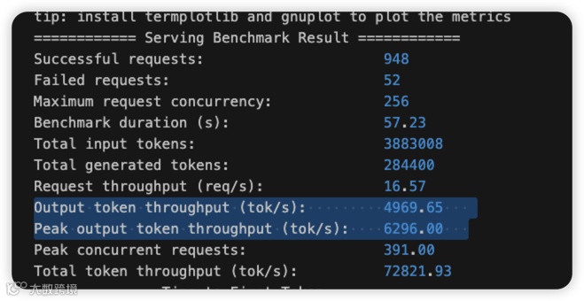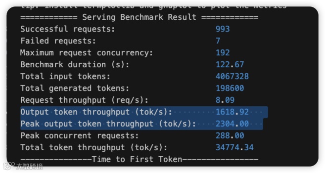 发现输出 token 吞吐差异巨大。
