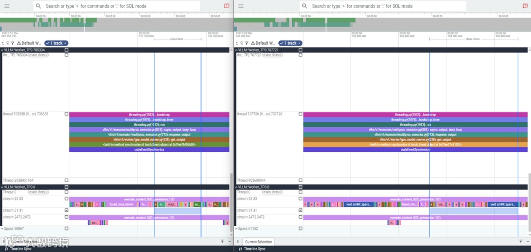 cross_device_reduce_1stage->sparse_attn_fwd_kernel,耗时 183us。层间增量:DSA 的注意力计算在每个模型层上比 MLA 慢 116us。在多层模型架构中,这一开销在端到端延迟中被逐层累积和放大,61 层相差 (61 *116us) / 1000 = 7.076ms 的总延迟增量。