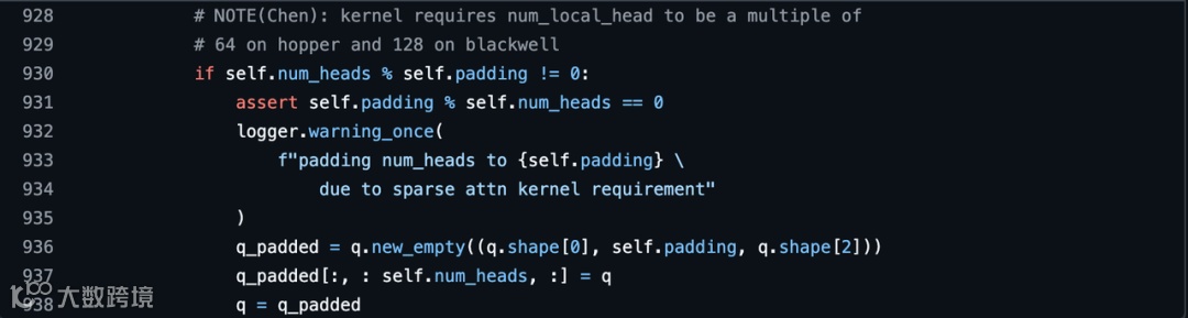 核心是因为目前 FlashMLA-Sparse 内核在 Hopper 架构上仅支持 64 的倍数的头数。而 DeepSeek V3.2 总的有 128 个头,那只有在 TP1(每个 Rank 128 个 head)和 TP2 (每个 Rank 64 个 head)的情况下 head 划分是最佳的(能被 64 整除),会引入 Head 冗余 (Padding),产生了额外的计算和显存开销,直接拖慢了性能。 因此,我们将策略调整为 TP2 + DP (数据并行),这是当前架构下的数学最优解(https://github.com/vllm-project/vllm/issues/31368)