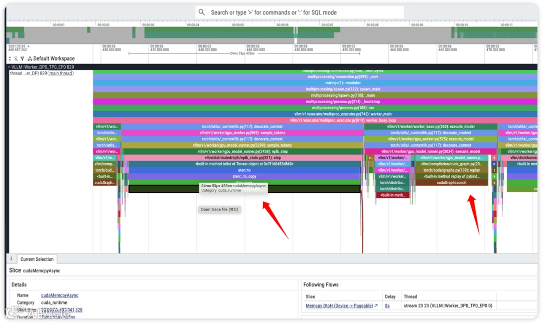 在多节点下 Profile 默认选用 DeepEP 的 deepep_high_throughput 模式,Decode 模型选用 deepep_low_latency 模式。