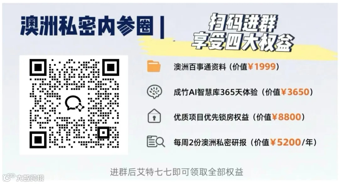 以上,房源稀缺,感兴趣的朋友,欢迎下方扫码进群获取详细项目资料!如果你对2026年全球资产配置有兴趣,对澳大利亚有兴趣,都欢迎扫码进群,和我们聊一聊,和群内全国志同道合的朋友一起聊聊。