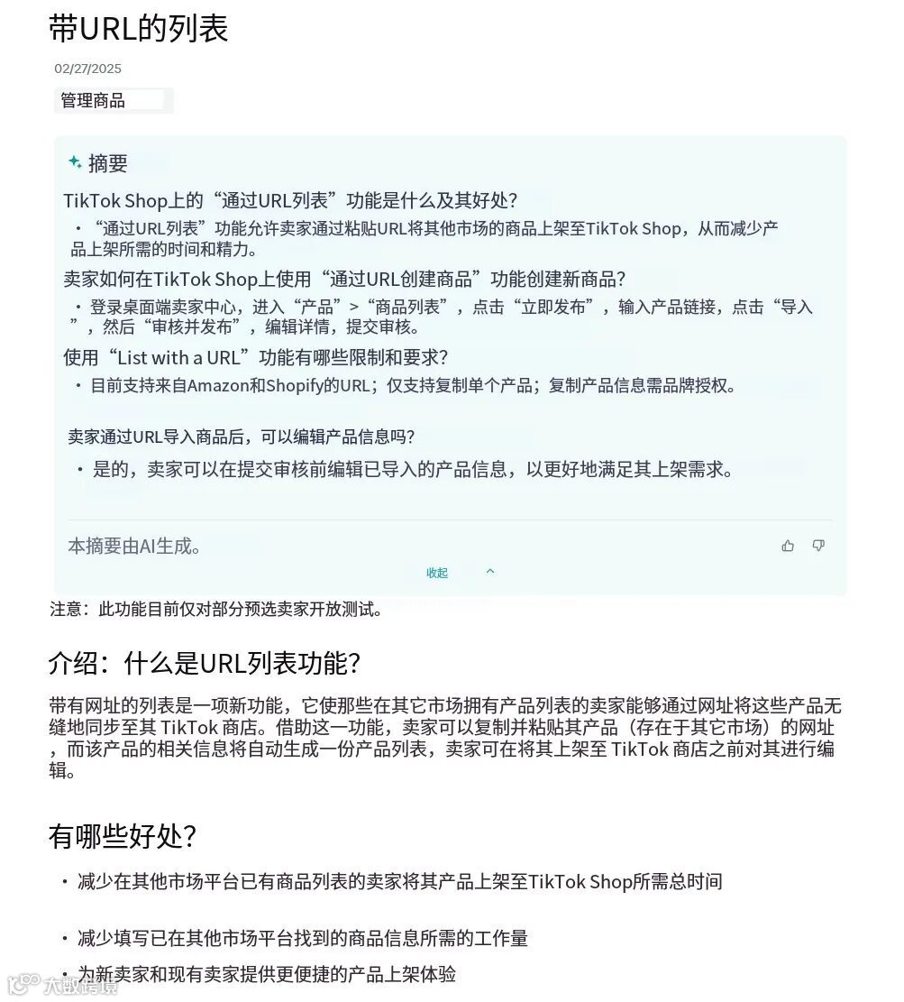 近期,TikTok Shop悄然推出「List with a URL」功能,支持亚马逊卖家直接粘贴商品链接,系统自动抓取标题、主图、详情页、SKU等核心信息,几分钟即可完成上架;更关键的是,该功能已打通亚马逊FBA/MCF库存体系,实现“TikTok接单、亚马逊发货”,一套库存覆盖双平台销售。长期观望TikTok的亚马逊卖家,终于迎来低门槛入场契机。