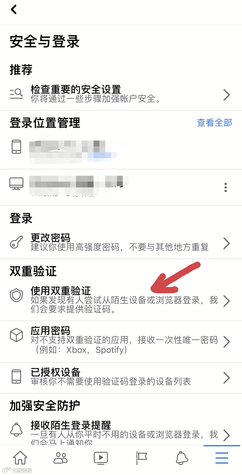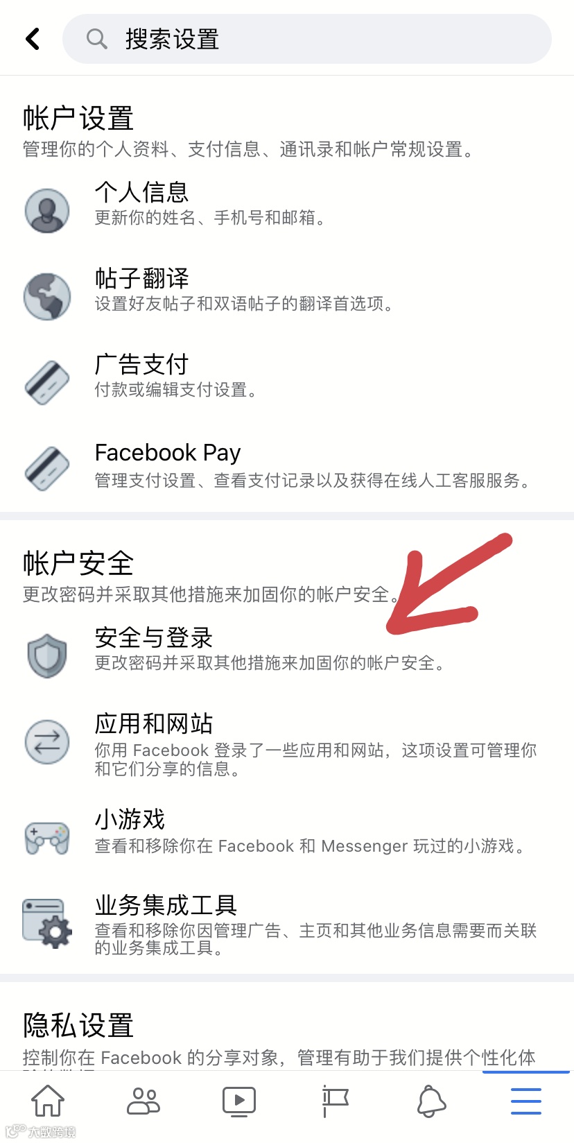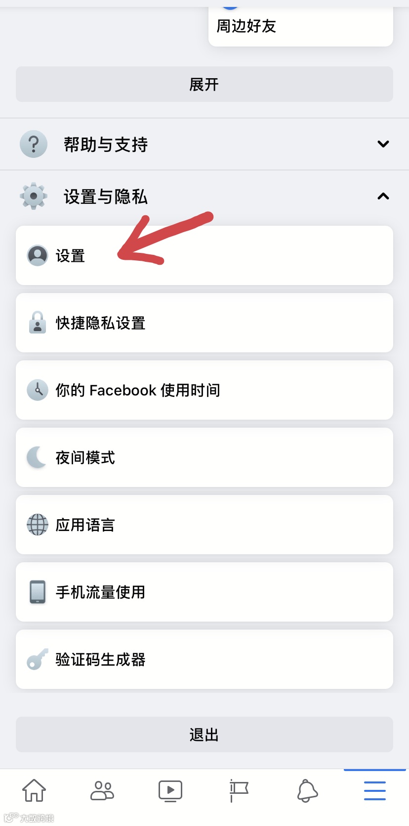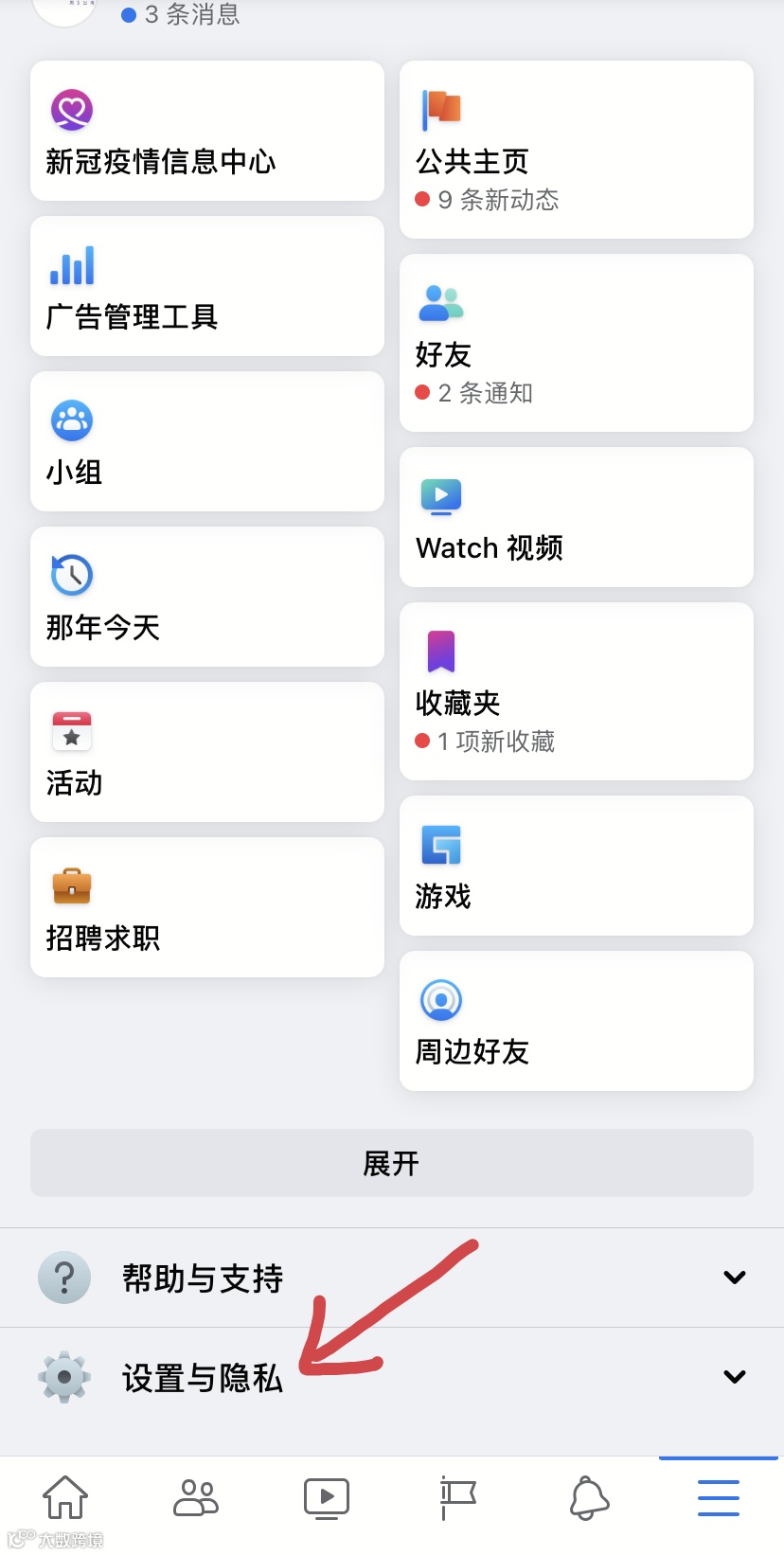 第一步:打开Facebook手机端,登录后点击功能栏最右侧的三条横线。