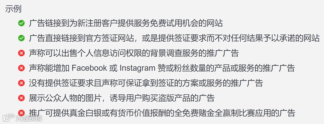 3. 不得使用非正当手段,故意规避 Facebook 广告审核流程或其他政策执行要求。