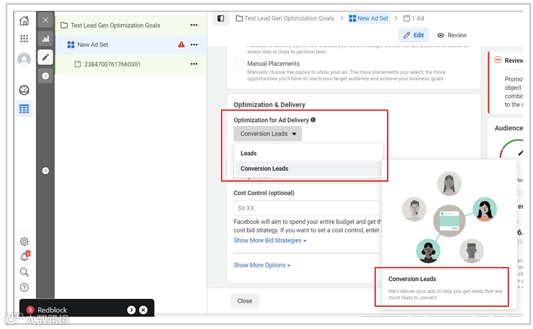 增加了针对线索转化的优化目标,这对于每月产生超过500个线索并已通过集成CAPI将其CRM与Facebook平台打通的广告主来说最有价值。