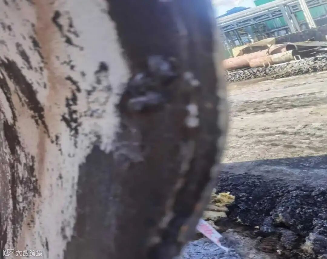 (5)进一效下塔的蒸汽管道保温部分受损,进一效下塔前第一弯头与管段对接焊缝部分开裂(见图17)。