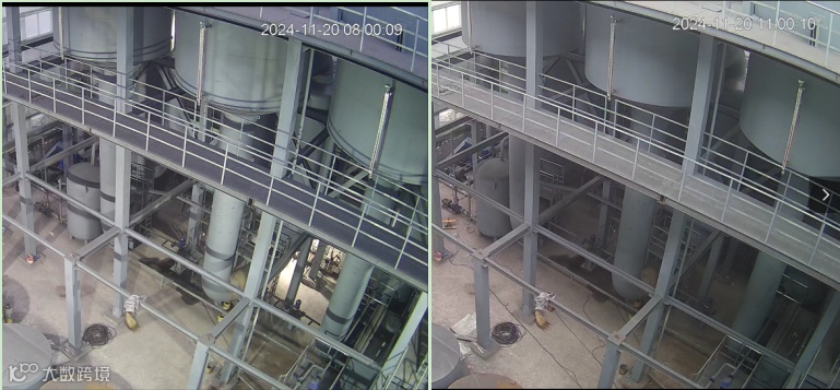 11月20日7时25分,监控视频显示一效、二效脱酚塔上塔液位约1m,三效脱酚塔上塔液位约0.4m(见图5)。