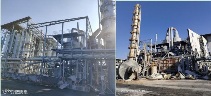14时49分,一效脱酚塔上塔发生爆炸。