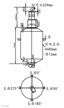 (4)筒体下部Φ1120接管开孔未进行开孔补强设计。