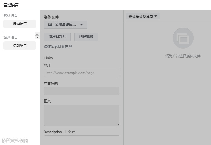 1. 进入BM后台,在完成Facebook广告系列和广告组的创建后,在广告层级,选择“用多种语言创建广告”的选项