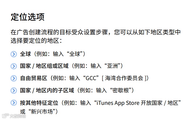 您还可以在Facebook广告管理工具中选择“浏览”,打开区域和国家 / 地区下拉菜单。系统会面向指定地区的用户展示广告并监测广告表现。如果广告在某些地区的表现更好,系统会将更多的预算用于向这些地区的用户投放广告。您可以在Facebook广告管理工具中查看按地区细分的成效数据。你可以保存地区列表,以便在今后的Facebook广告系列中重复使用。