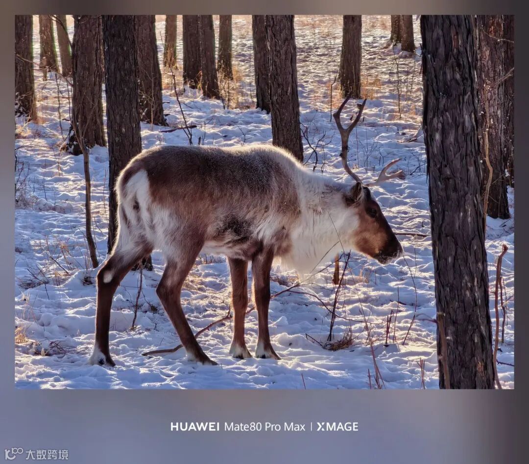 在被厚雪覆盖的山林里找不到路,用HUAWEI Mate 80的户外探险模式,就能从10000+条户外精选路线中,轻松找到寻找驯鹿的路线;野外拍摄难免会遇到阳光直射、阴天光线不足、逆光拍摄等情况,第二代红枫影像让照片无论在晴天、雪天还是夜晚的篝火旁,都能还原驯鹿的真实状态;而当最低气温达到零下58℃,在远离城市并且信号不稳定的森林深处,无网应急通信为探险者们提供了安全保障。