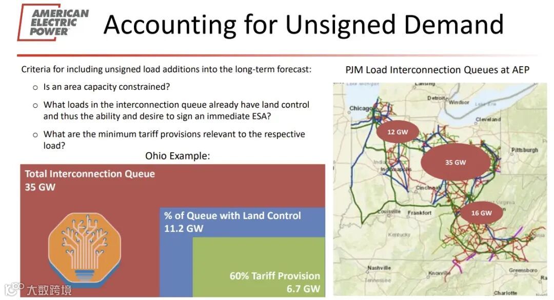 例如,截至2024 年中,AEP 俄亥俄州公司收到了 35GW 的负载申请,其中 68% 甚至没有土地控制权。