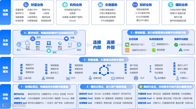 在拥抱AI智能方面,娄彦宁提出在如今算力、模型与应用共生演进中需思考面向AI原生的顶层设计,深入行业场景应用,并从智算架构、企业智能大脑、知识治理、智能体构建、工程能力、安全合规、生态布局与组织演进等维度,深入分享了前沿洞察与实践指引。娄彦宁还重点介绍了腾讯云的AI知识库、智能体开发平台、模型平台、代码助手、大模型内容安全等在证券基金期货行业中的丰富先行实践,加速行业智能化升级。