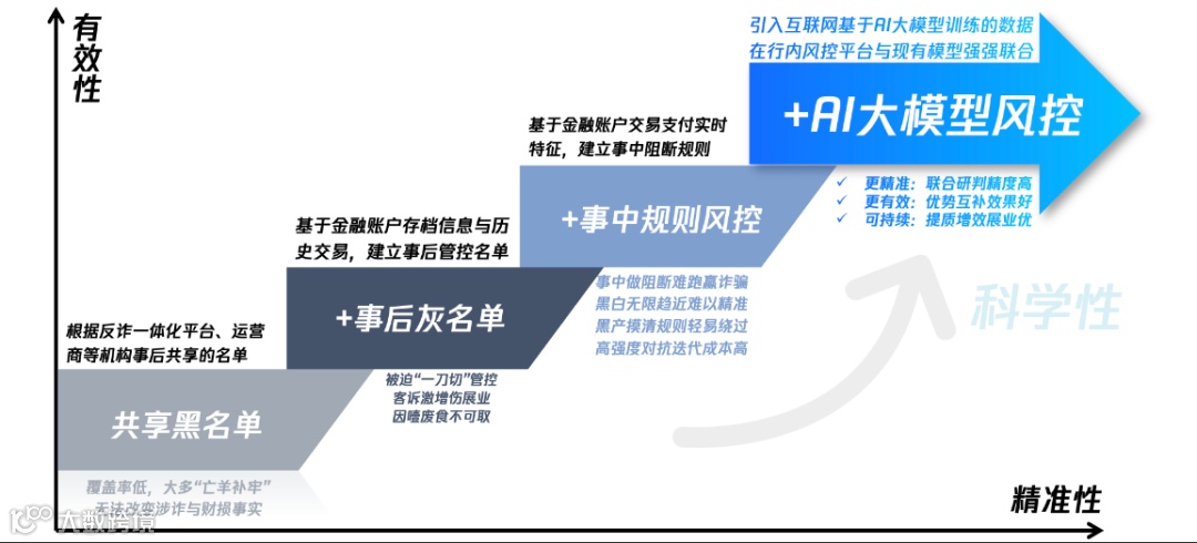 这一过程并非代替或否定金融机构以“规则风控”为主的反诈模型宝贵价值,而是沿“大模型定方向,小模型定决策”的思路,将金融风控与互联网风控双方优势融会贯通,构建更科学、更精准、更有效的防控体系,联合抵御更猖獗的诈骗黑产。