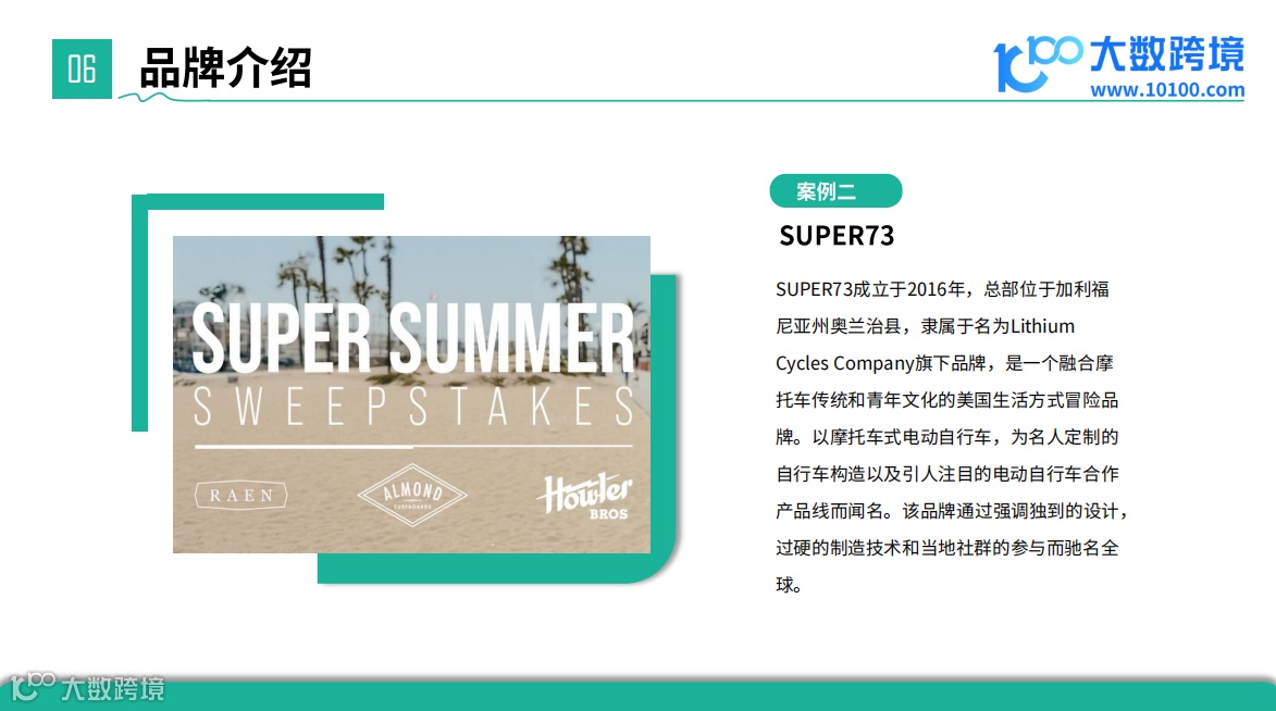 SUPER73是一个融合摩托车传统和青年文化的生活方式冒险品牌,以摩托车式电动自行车和名人定制自行车构造闻名。该品牌通过独特的设计和高性能产品赢得了广泛的消费者支持。SUPER73的成功在于其强大的品牌社区建设和持续的产品创新。