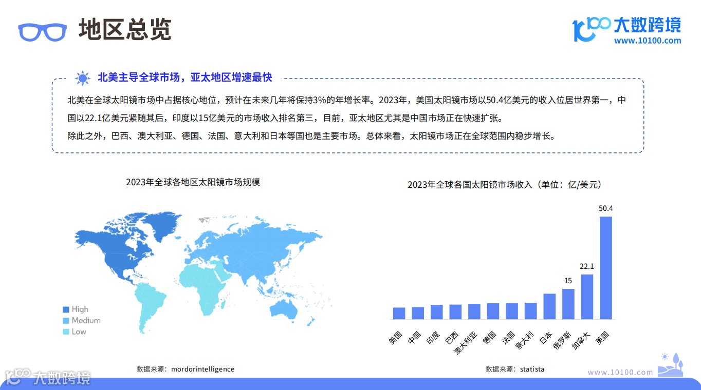 本报告《大数跨境:2024全球太阳镜市场洞察报告》旨在分析太阳镜市场的市场状况、趋势和消费者行为,提供基于数据和事实的信息,帮助企业了解市场需求,预测市场变化,从而制定更有效的市场策略。