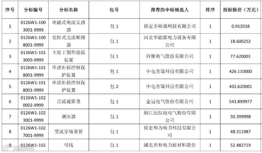 国网冀北电力有限公司 2026 年第一次物资公开招标采购项目(招标编号:JB26-HW-ZB01-0126W1)评标工作已经结束。现将评标委员会推荐的中标候选人公示如下: