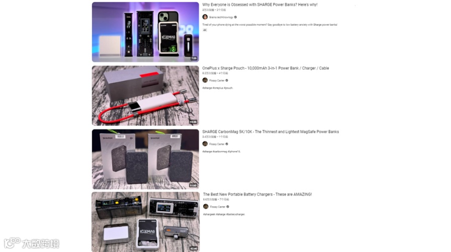 在YouTube上,SHARGE闪极还获曾得了来自千万级博主的“自主推荐”。SHARGE闪极还通过与科技类KOL合作,以产品对比、开箱视频为主,通过对比各种产品进行分析,提高其产品与品牌的知名度和圈层口碑。在海外知名科技类网站上,也有数量不少的SHARGE闪极产品测评文章。