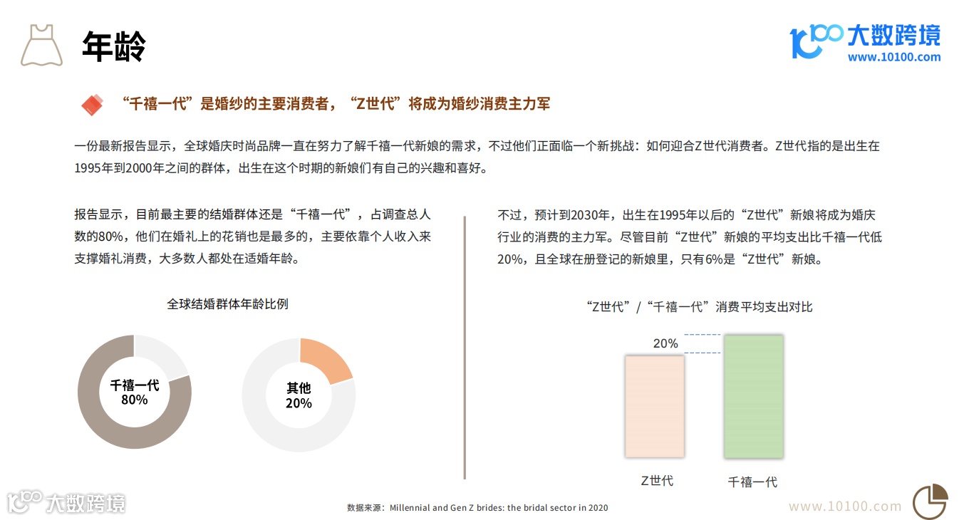 婚纱市场的消费者涵盖了各年龄段人群,一份最新报告显示,全球婚庆时尚品牌一直在努力了解千禧一代新娘的需求,不过他们正面临一个新挑战:如何迎合Z世代消费者。Z世代指的是出生在1995年到2000年之间的群体,出生在这个时期的新娘们有自己的兴趣和喜好。