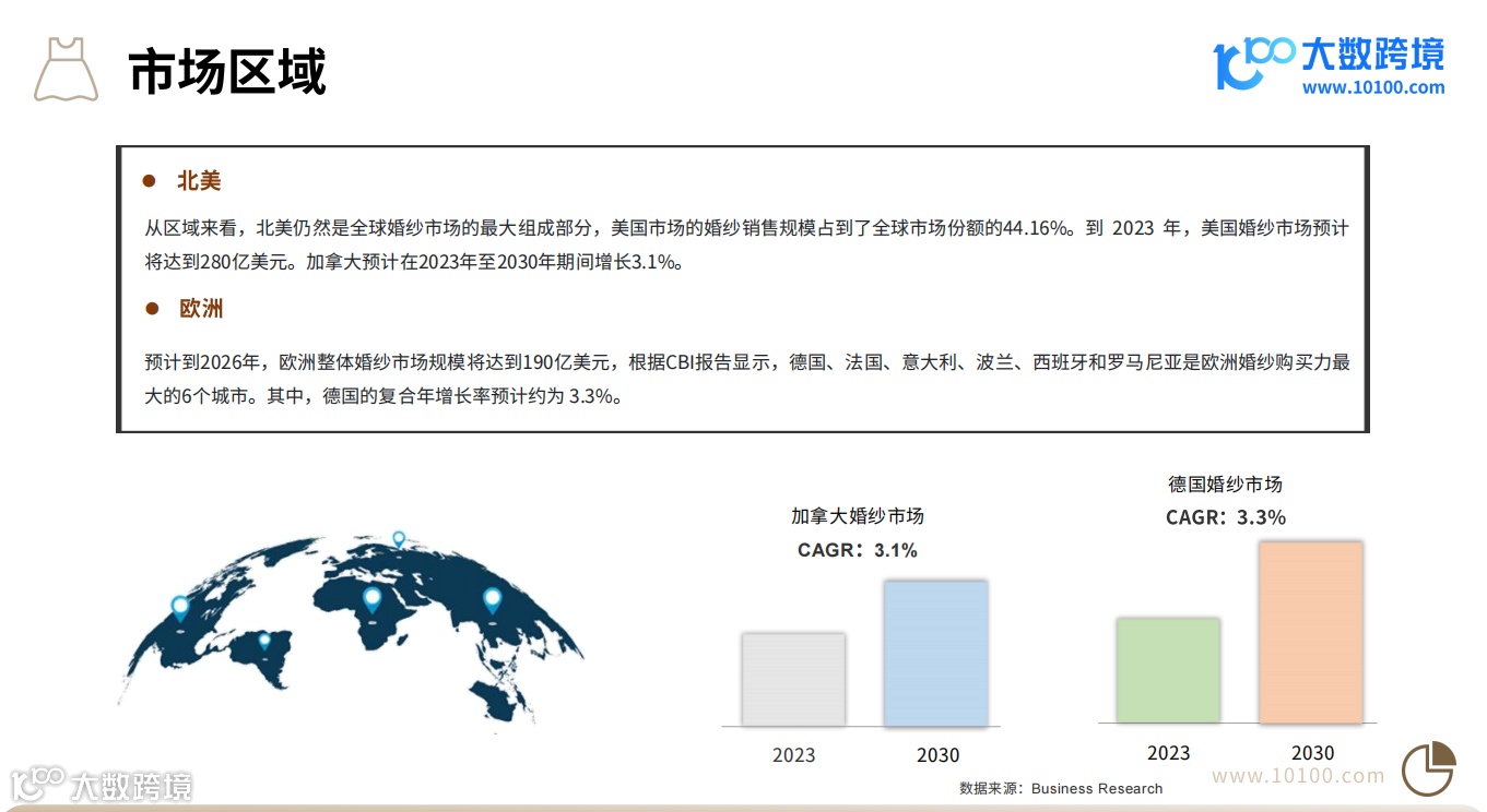 婚姻是人生中的重要里程碑,而婚纱作为婚礼仪式中的核心服饰,承载着深厚的文化意义和情感价值。随着全球经济的发展和人们生活水平的提高,婚纱市场已经成为时尚产业中一个不容忽视的重要组成部分。在现代社会,婚纱不仅仅是新娘在婚礼当天穿着的服饰,它也是个人品味、社会地位和文化身份的象征。随着个性化和定制化趋势的兴起,消费者对婚纱的需求日益多样化,促使婚纱设计师和制造商不断创新,以满足不同消费者的需求。本报告旨在向关注此市场的销售商和企业提供最新的市场动态和深入分析。大数跨境致力于通过对该行业的深入探讨,帮助商家更精准地把握消费者需求和婚礼市场发展脉络及未来趋势,以便对市场的波动做出恰当的判断和策略调整。