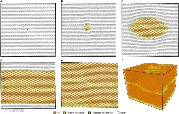 图3 | 分子动力学模拟展示石墨向六方金刚石转变的过程及层间键驱动机制
