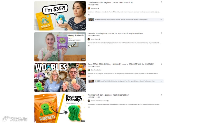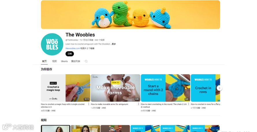 在YouTube上,The Woobles早在2020年就已经开始发布视频,至今The Woobles 在 YouTube上收获有72万的订阅,在发布的内容上大部分是毛线编织干货和简单的小剧情来将产品巧妙地插入其中,产品有趣可爱的形象不会有任何违和感。