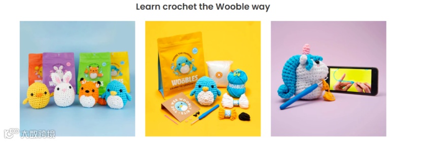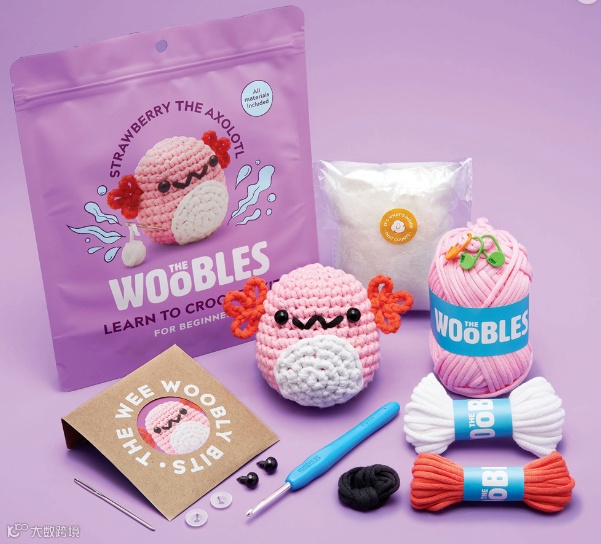 The Woobles的DIY钩针动物套件专为初学者设计,每个套件都配有“Easy Peasy”纱线、钩针、填充物、眼睛、教学教程、电子邮件咨询等,帮助消费者制作可爱的动物。