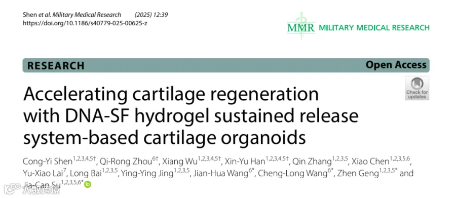 论文题目:Accelerating cartilage regeneration with DNA-SF hydrogel sustained release system-based cartilage organoids