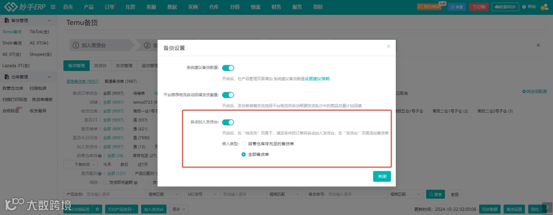 妙手帮您轻松搞定!卖家朋友在TEMU备货-【备货设置】中开启自动加入发货台后,当店铺出单时,系统自动将符合条件的备货单加入发货台,无需卖家手动接单,减少人力、时间成本。