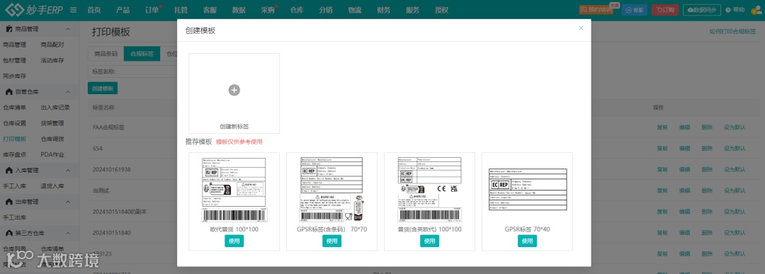 对于出口不同地区的产品,需要按照规定打印合标签贴箱发货,方可进行正常售卖。妙手提供多种不同尺寸的合规标签模板,方便卖家一键套用。